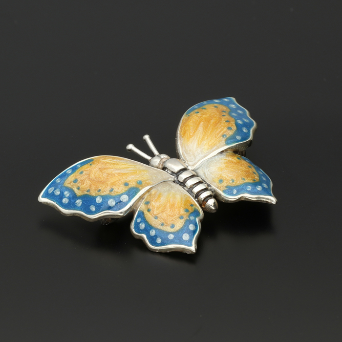 Silver and enamel brooch, with pin & safety catch fittings on the back