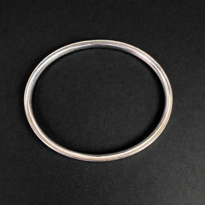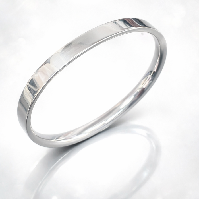 Handmade sterling silver reverse-D section bangle, using drawn wire, Flat on top and courted underneath.