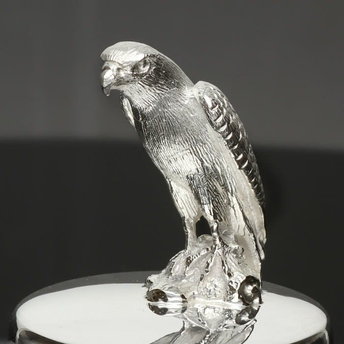 Silver circular lidded box with bird top, by Ian Powsey, London 2005.