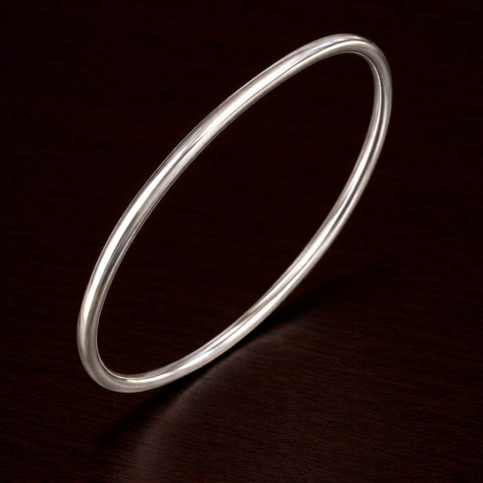 Handmade solid sterling silver bangle, using drawn 4mm round wire.