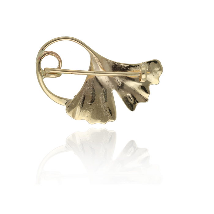 9ct yellow gold Ginkgo leaf brooch.