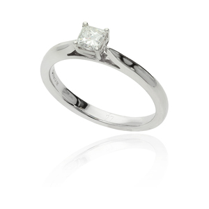 Ring; Single stone diamond 0.27cts rubover set within a platinum wed-fit mount.