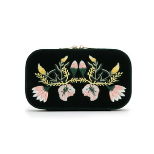 Caroline medium jewellery case, by WOLF. Ivory diamond quilted leather accented with gold hardware.