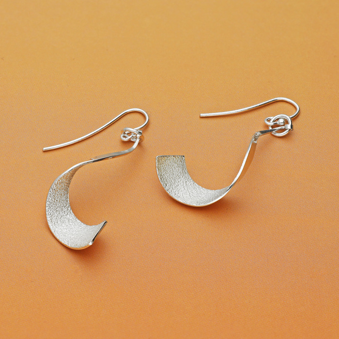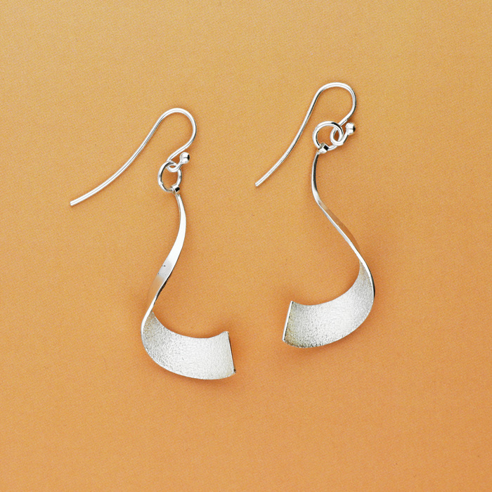 Silver Vortex half twist drop earrings by Beverly Bartlett.