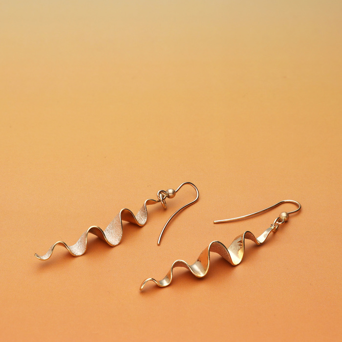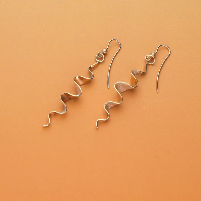 9ct rose gold Waves drop earrings by Beverly Bartlett.