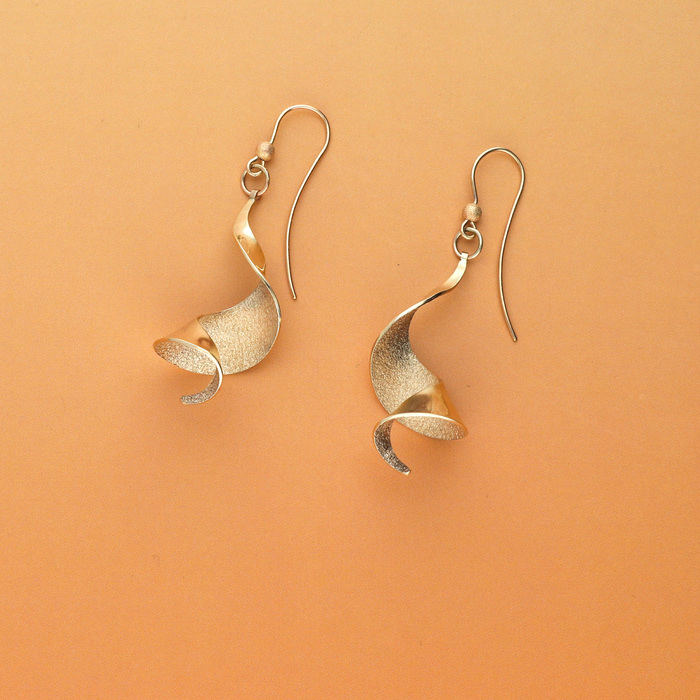 9ct rose gold Vortex drop earrings by Beverly Bartlett.