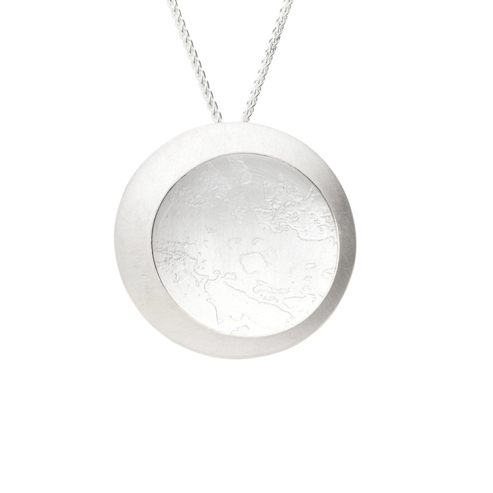 Large silver satin etched pendant on 46cm silver spiga chain.