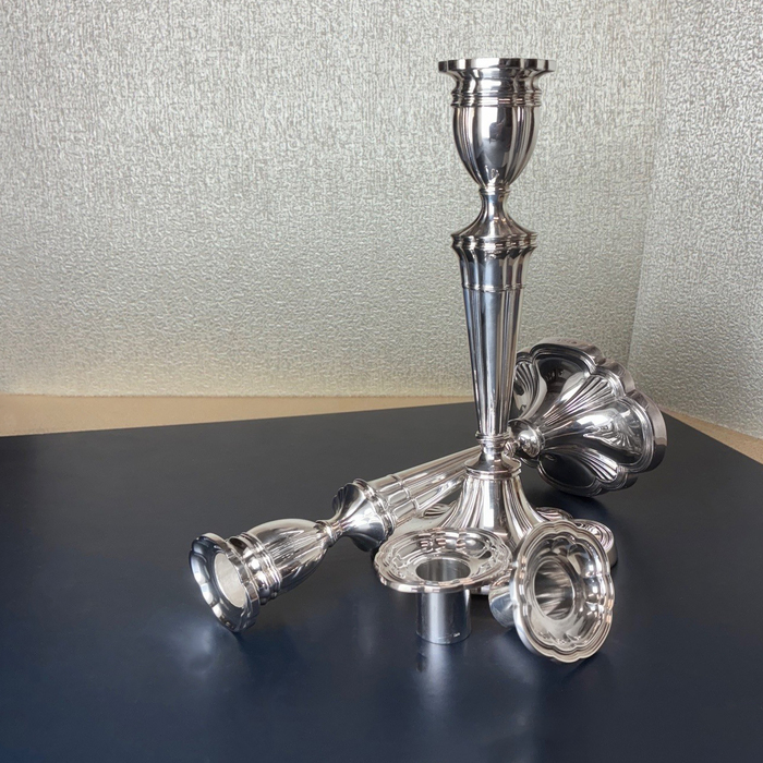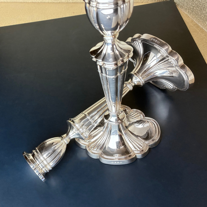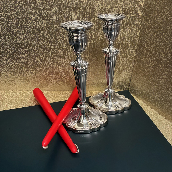 Pair of sterling silver filled candlesticks, Adamsque style.