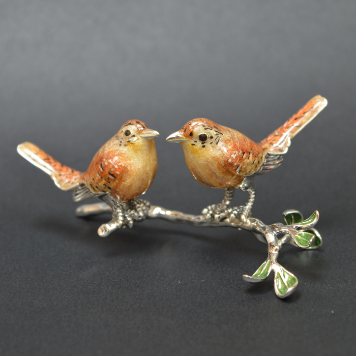 Cast models in sterling silver with hand enamelled detail.