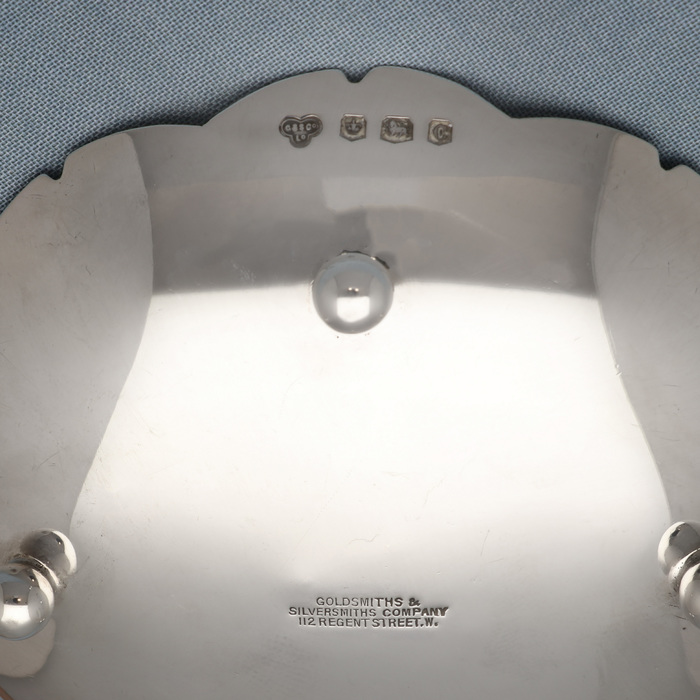 Silver 4¼" poppy dish by Goldsmiths & Silversmiths Co. Ltd, Sheffield 1945. Weight 84g / 2.7oz.