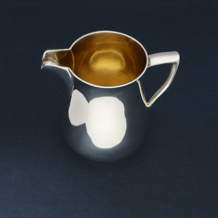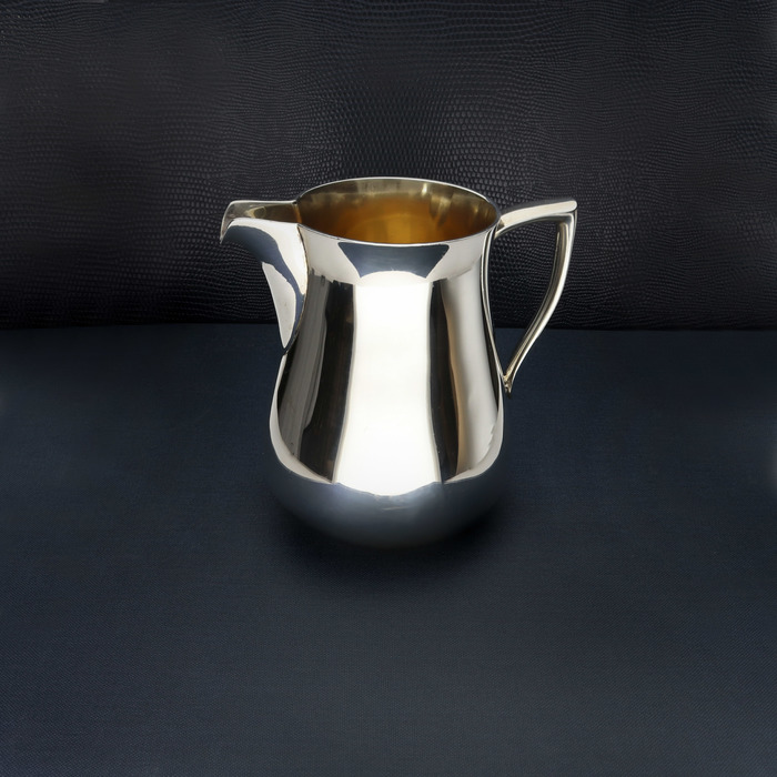 Sterling silver jug of baluster frm, polished with a gilded interior.