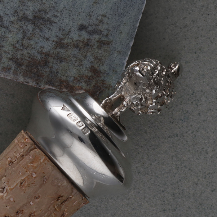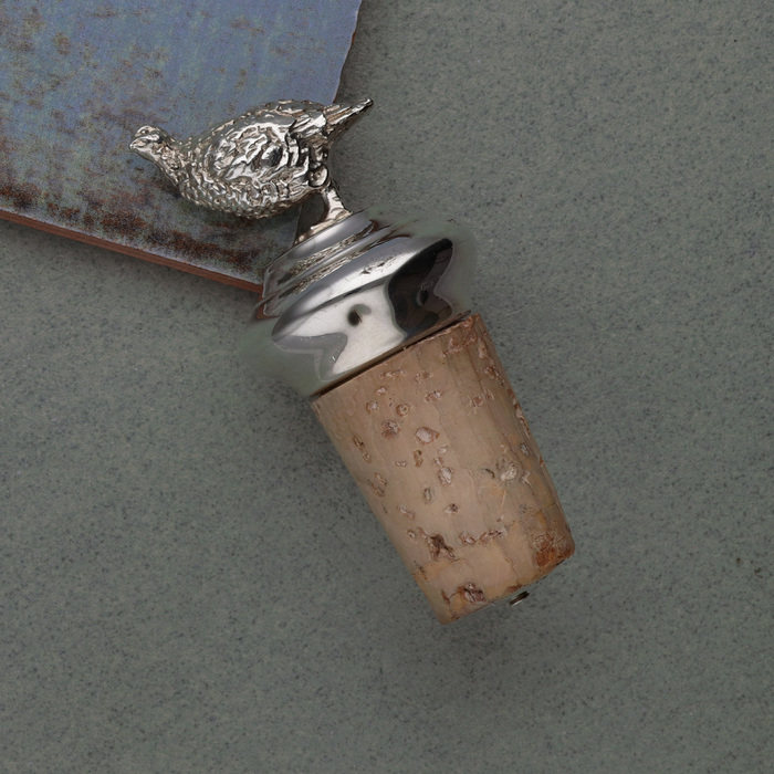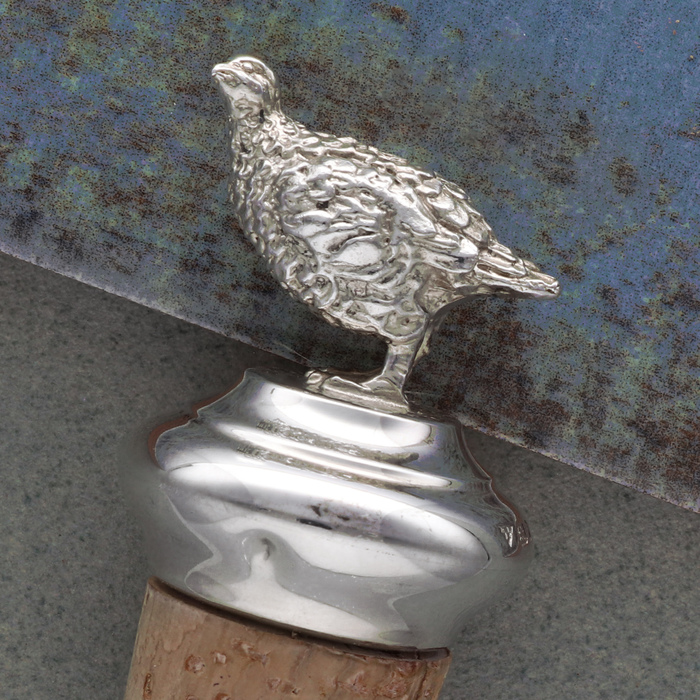 Sterling silver bottle stopper, with Grouse finial and cork stopper.