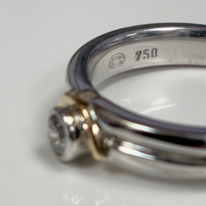 Georg Jensen; Second Hand Ring, Single Stone Diamond in 750 White & Yellow Precious Metal.