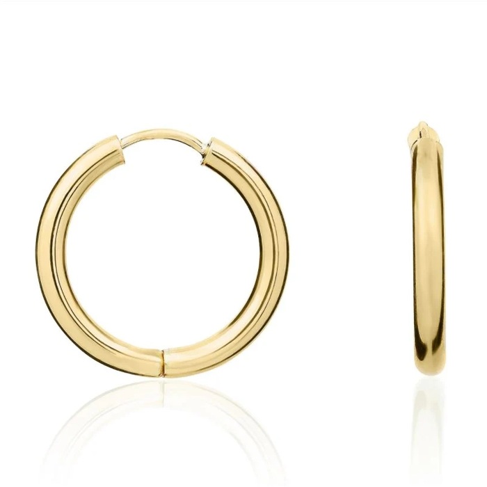 A pair of 9ct yellow gold round 2.5mm huggy hoop earrings, diameter 20mm.