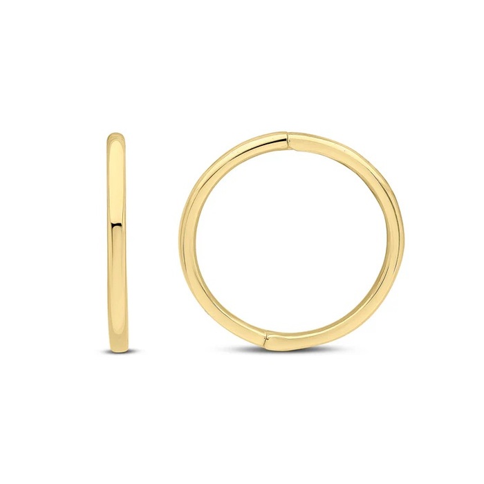 A pair of 9ct yellow gold hinged sleeper hoop earrings, diameter 15mm.
