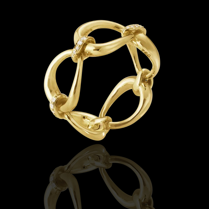 Georg Jensen Offspring ring #1433C, in 18ct yellow gold with pave set diamonds, total weight 0.14ct, colour G, clarity VS.