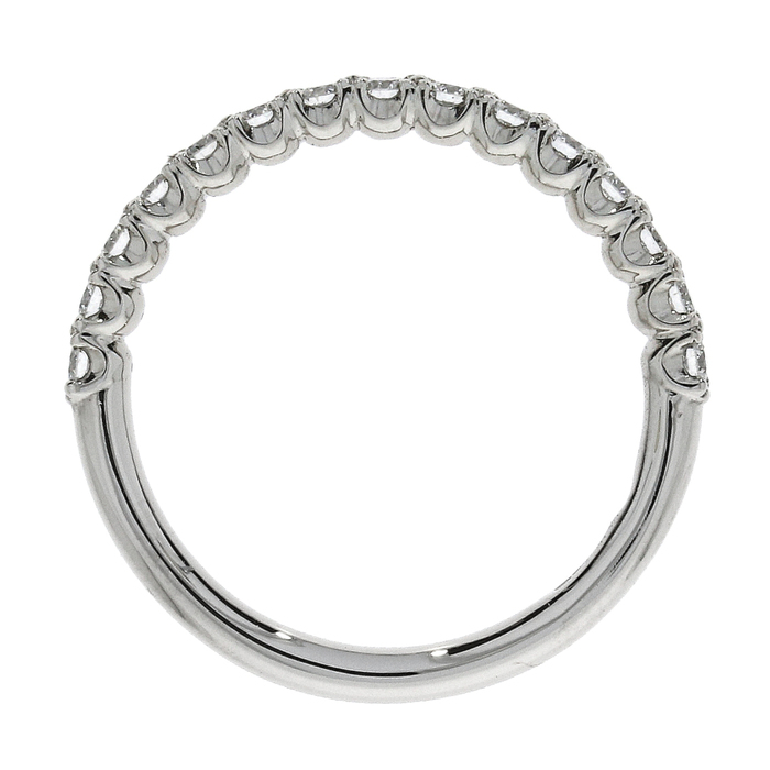 Round brilliant cut diamonds x13, combined weight: 0.48cts, grain claw set to individual scalloped cups to the top half of an all platinum band.