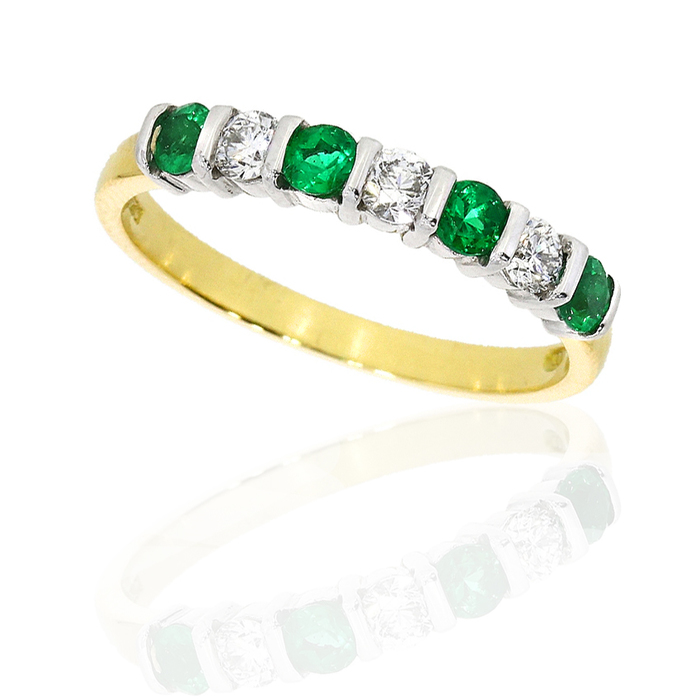 Eternity Ring; Emerald & Diamond 7 Stone Bar in 18ct Yellow & White Gold.