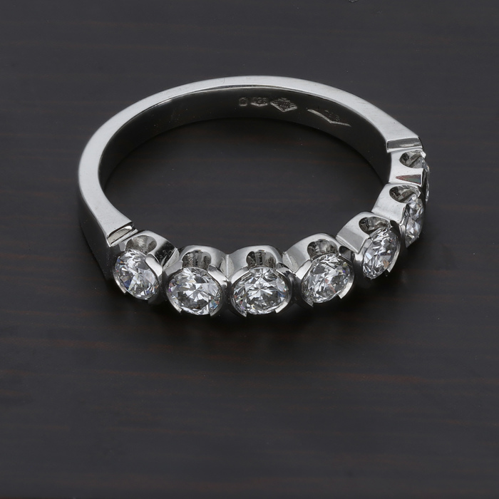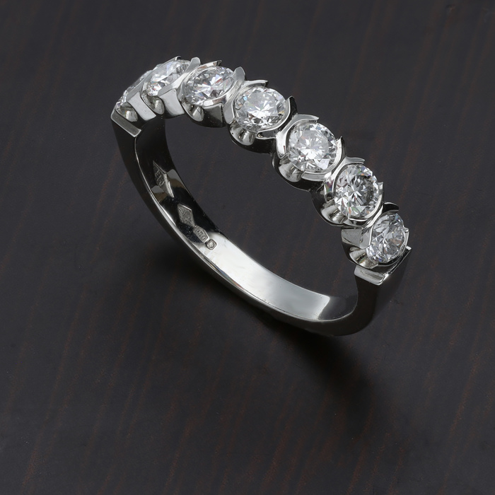 Round brilliant cut diamonds, combined weight of 0.90cts F VS, part rubover/half-moon set in an all platinum mount.