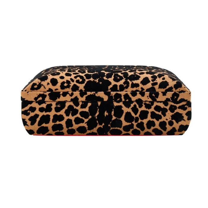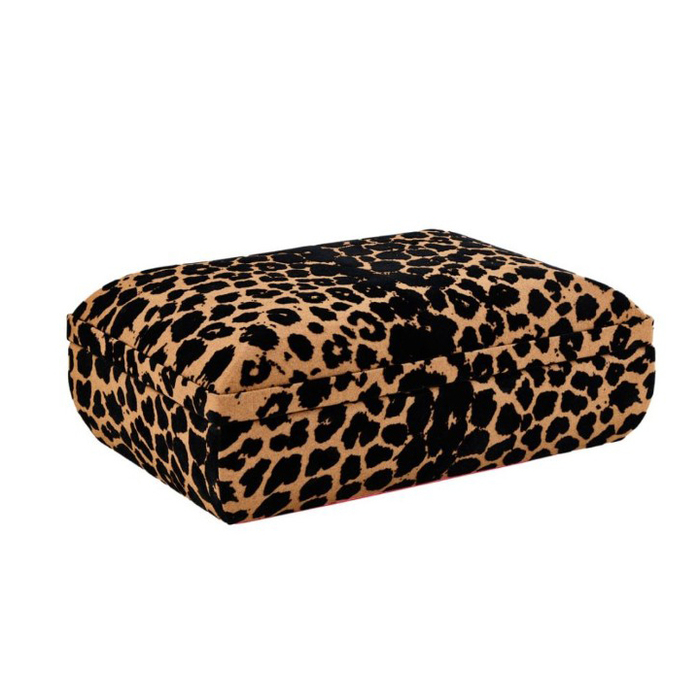 Savanna Medium Jewellery Box, leopard print exterior with a vibrant red LusterLoc™ lined interior which provideds a contrast and protects your collection from scratches and tarnish.