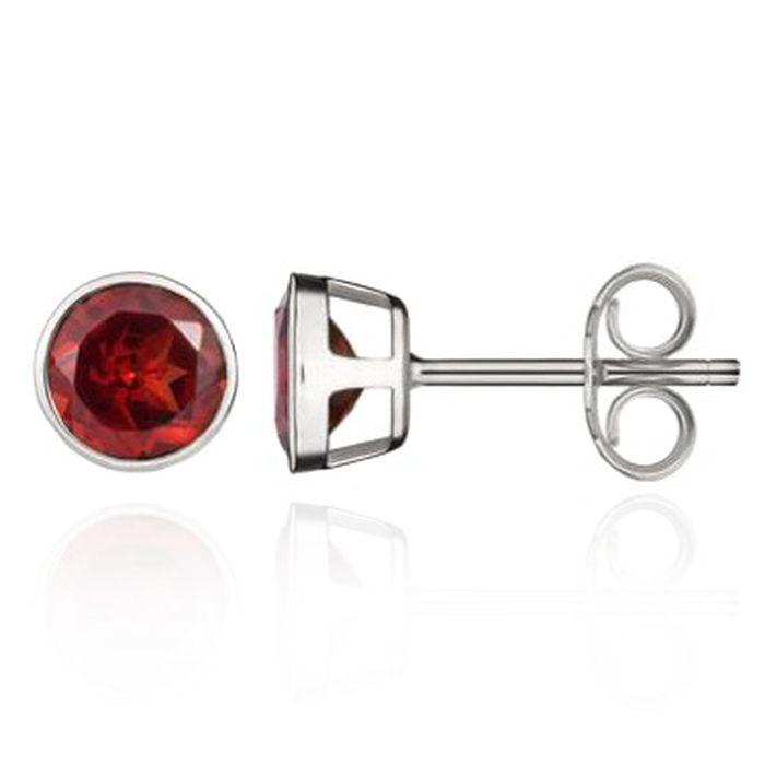 Earrings; Garnet studs, rubover set in 9ct white gold. Circular faceted 5mm garnets 1.14cts.