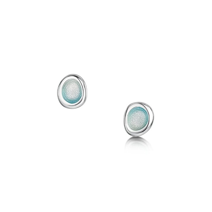 Silver stud earrings with Arctic Blue enamel.