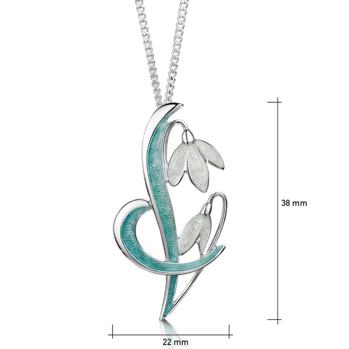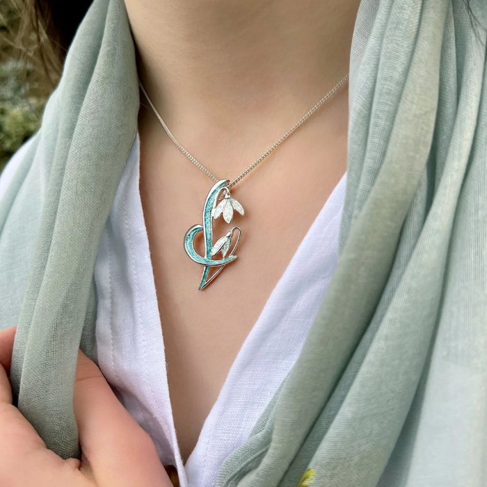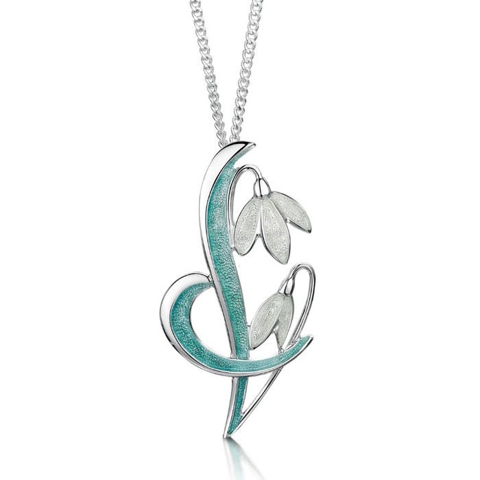 Silver Snowdrop pendant, in white and green Leaf enamel colour scheme.