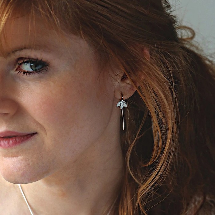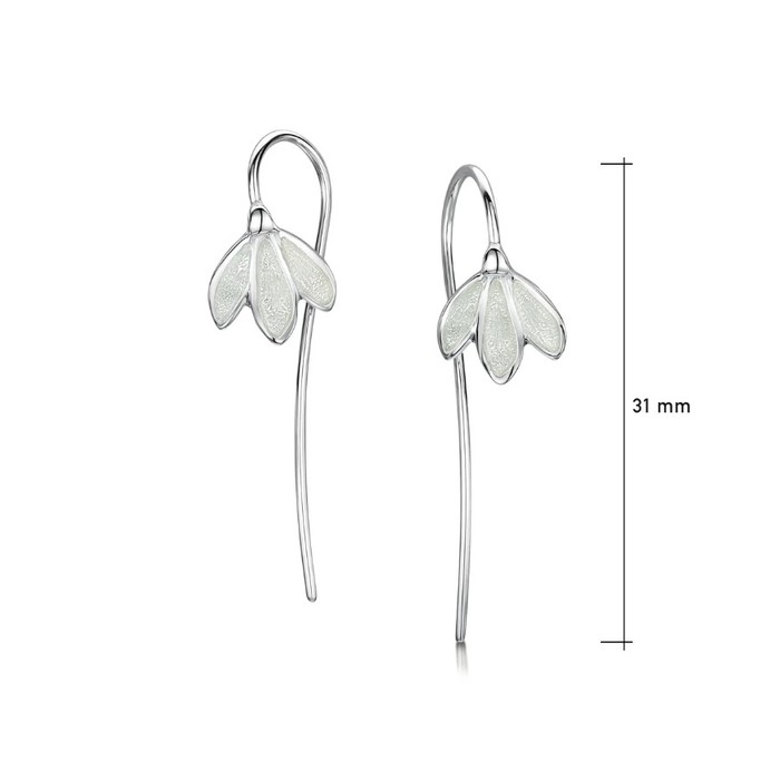 Silver Snowdrop hook drop earrings, with Crystal enamel colour scheme.