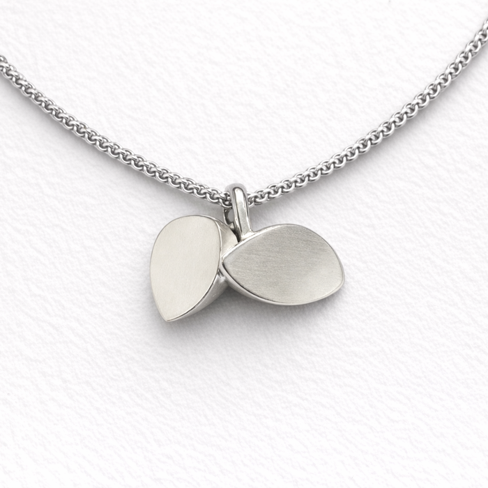 Silver double leaf pendant, on a silver Spiga chain, length 16".