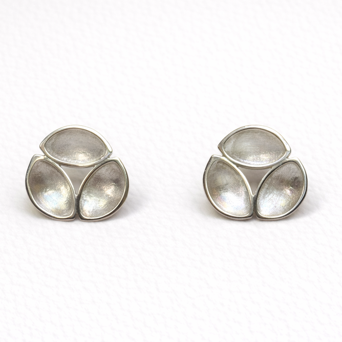 Silver Oyster triple leaf stud earring, large. Designed and made by Annie Ruthven-Taggart.