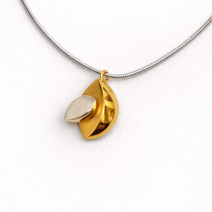 Silver and gilt Chunky Leaf pendant on a 16" snake chain.