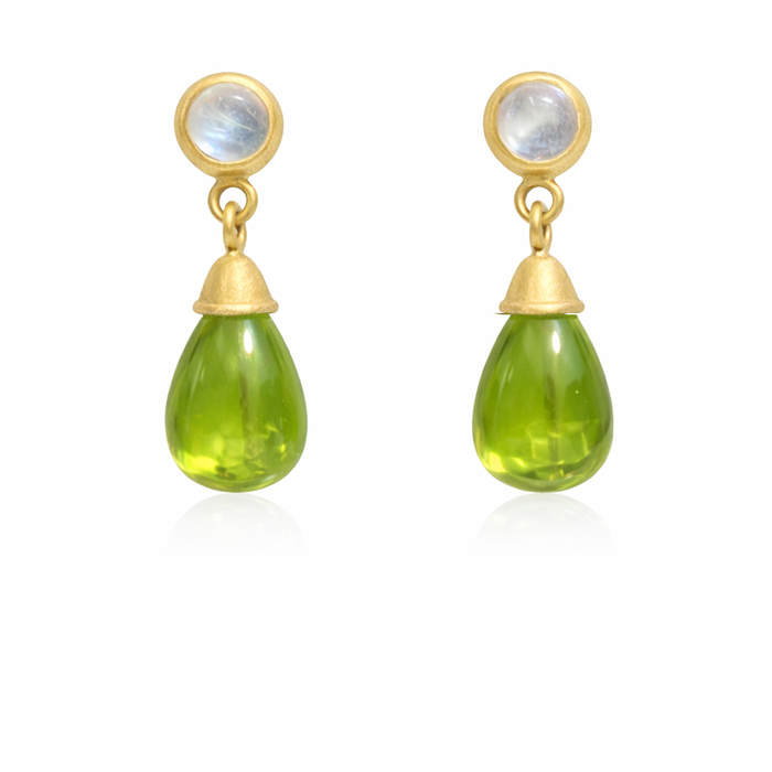 Earrings; Peridot 7.27cts & Moonstone 0.77cts drops.