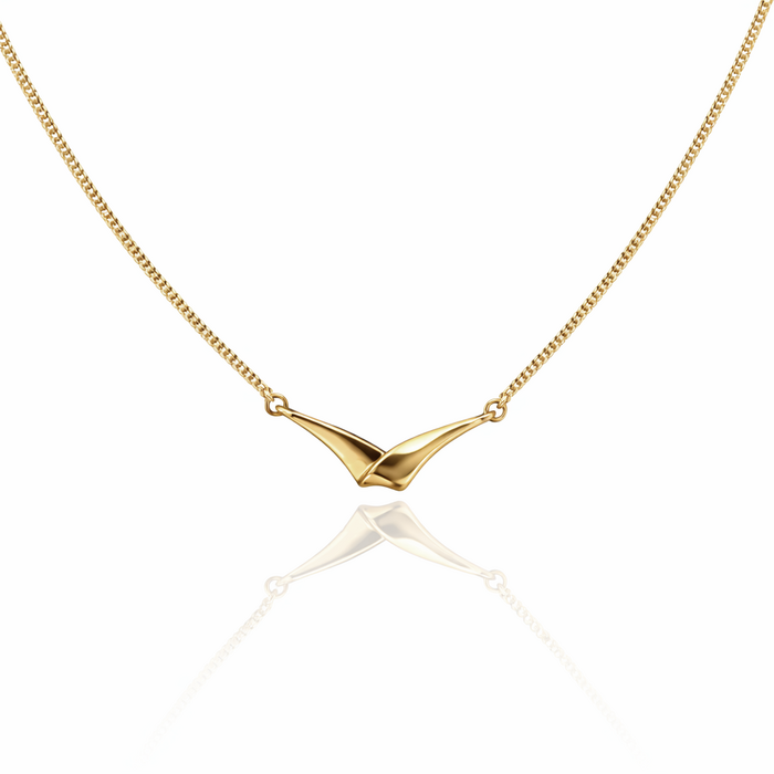 Necklet; 9ct yellow gold V fold, all polished, fixed on a curb link chain, length 45cm / 18".