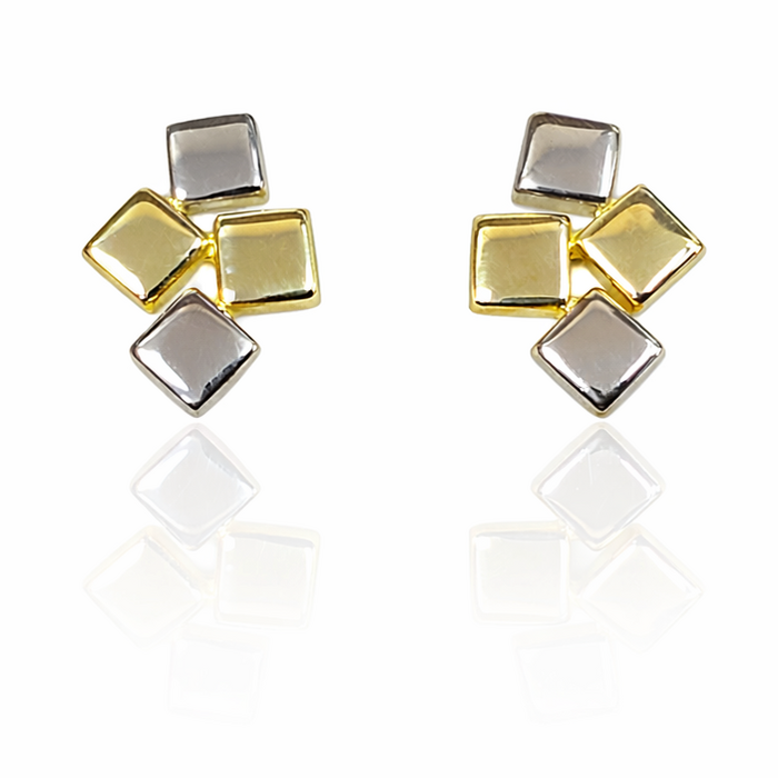 9ct yellow and white gold tumbling blocks stud earrings.