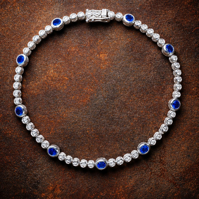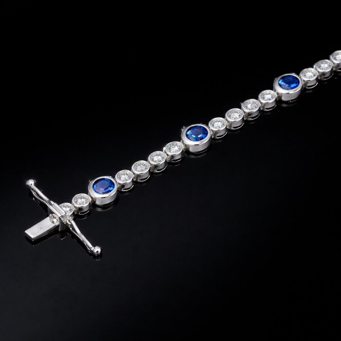 Bracelet; Sapphire 1.68cts & Diamond 1.21cts rubover set in 18ct white gold.
