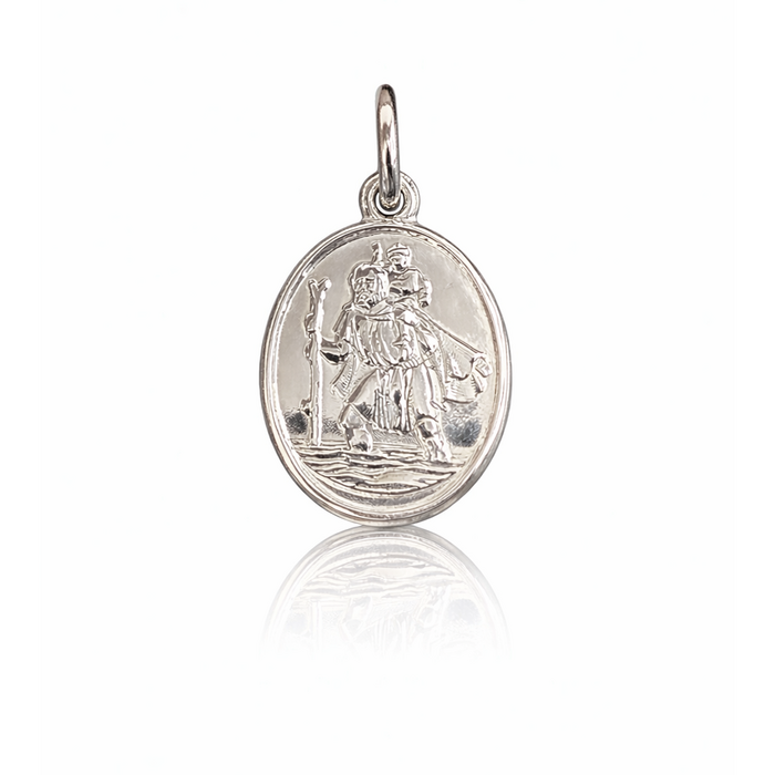 Sterling silver 14mm x 12mm oval St. Christopher made in England.