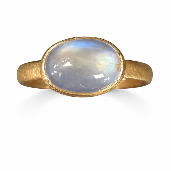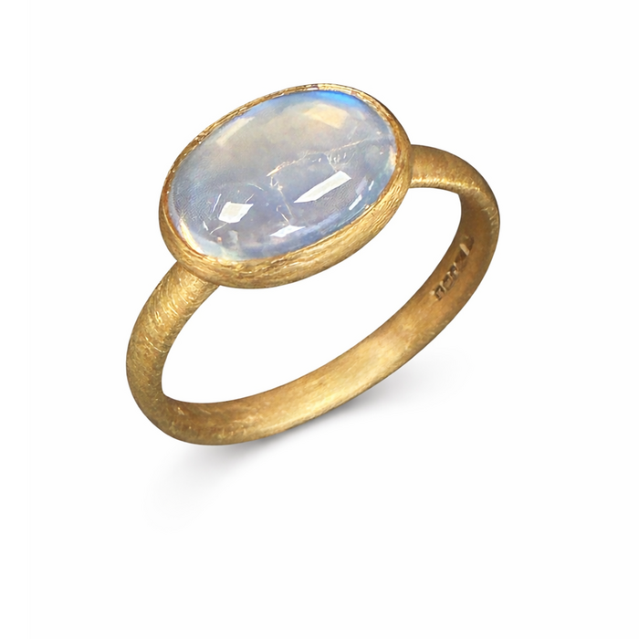 Puri Ring; Moonstone, rubover set within a handmade all 18ct yellow gold satin finished mount. By Goodman Morris.