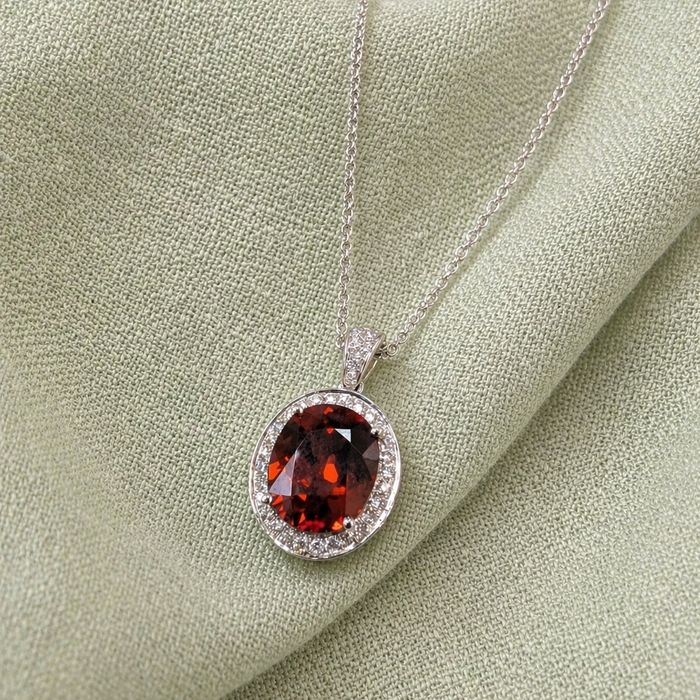 Pendant; Garnet & Diamond cluster, claw set in 18ct white gold.