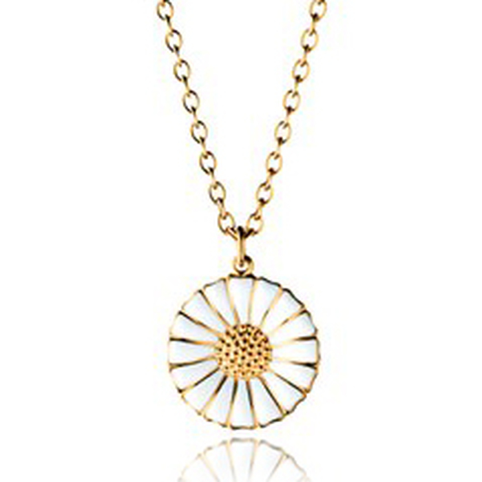 Georg Jensen; Daisy pendant, gold plated silver and white enamel. Size 18mm.