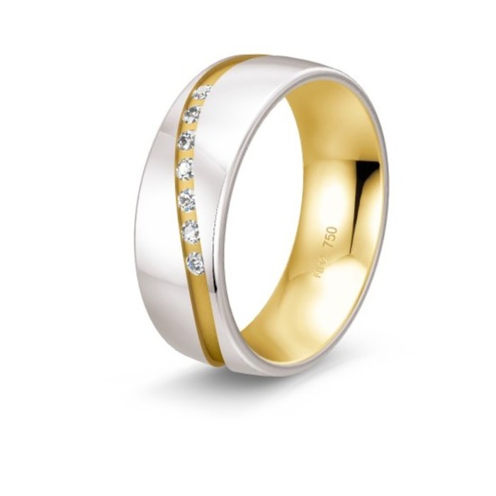 18ct white gold ring with diamond (0.21cts) set wave revealing the 18ct yellow gold inner band.