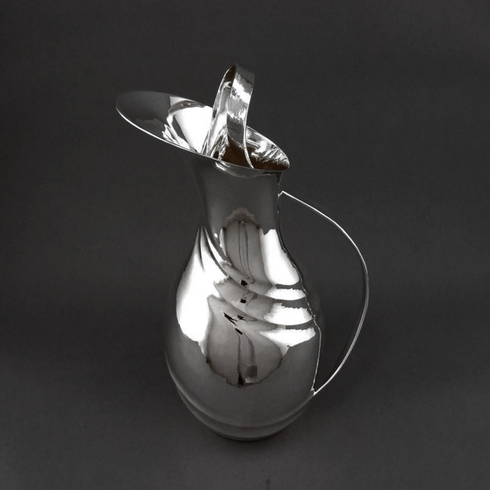 An unique Britannia silver jug, chased and planished pattern with handle that flows from the base, pierces the neck & loops over to the top lip.