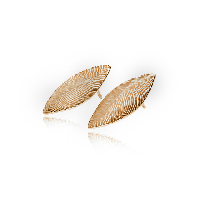 18ct yellow gold leaf stud earrings.