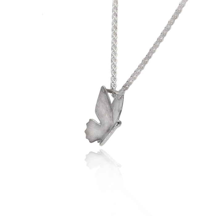 Silver In Flight Butterfly pendant on an 18"/45cm silver spiga chain.