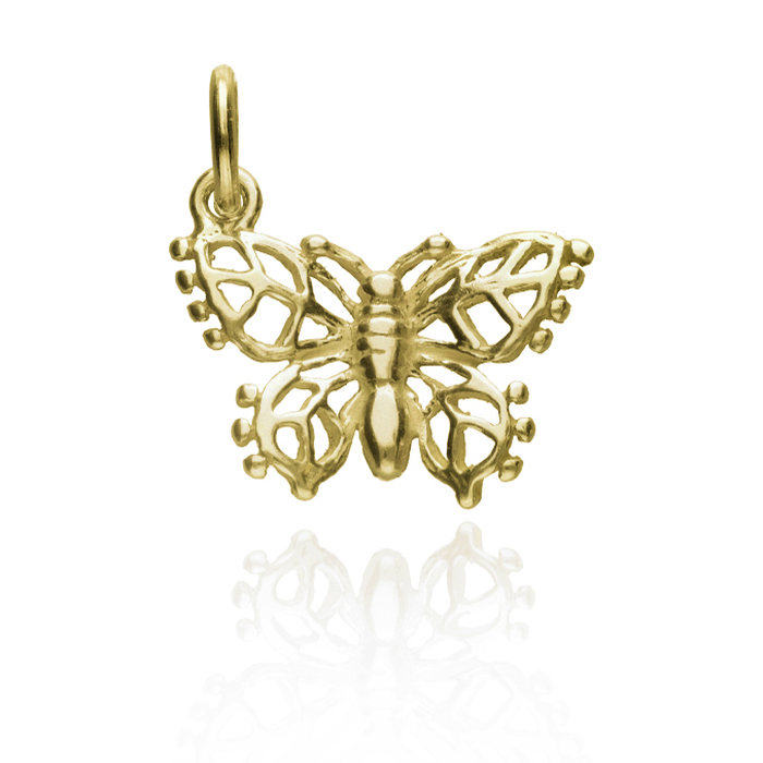9ct yellow gold filagree butterfly charm.